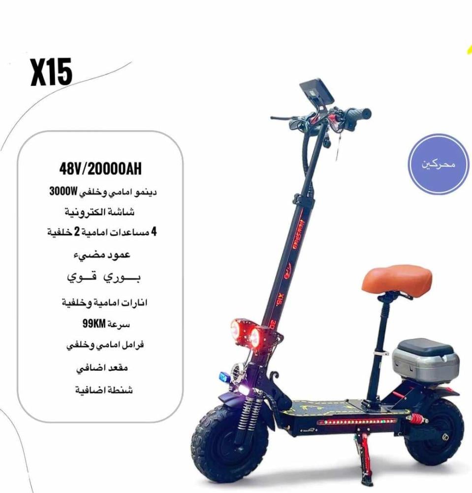 تخيل قوة الأداء والسرعة المذهلة التي يمكن أن تحققها مع سكوتر الوحش ماطورين X15 2024. هذا السكوتر هو ثورة في عالم التنقل الشخصي، حيث يجمع بين التكنولوجيا المتطورة والتصميم القوي لضمان تجربة لا مثيل لها. استعد للانطلاق بحرية وراحة تامة مع هذه التحفة الهندسية الفريدة.