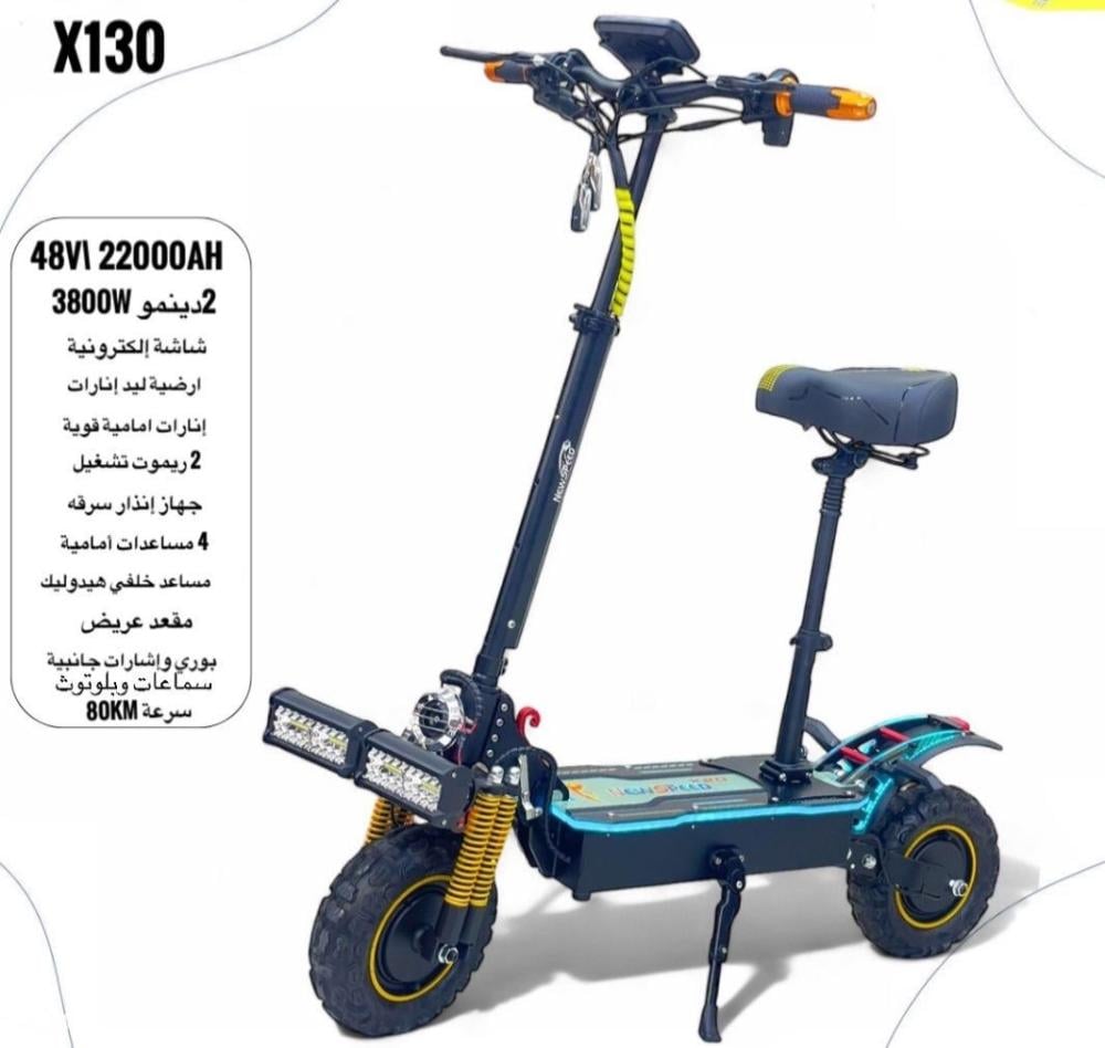 إذا كنت تبحث عن رحلة مريحة ومثيرة، سكوتر كهربائي مع كرسي هو الخيار المثالي لك. يأتي بتصميم عصري وقوة فائقة، مما يجعله مثاليًا للتنقل في المدينة أو استكشاف المناطق الصحراوية، يأتي بكفرات 11 إنش تيوبلس صحراوي توفّر لك أقصى درجات الثبات و مزود بماطور أمامي بقوة 1800 واط وماطور خلفي بقوة 1800 واط لتسارع ممتاز